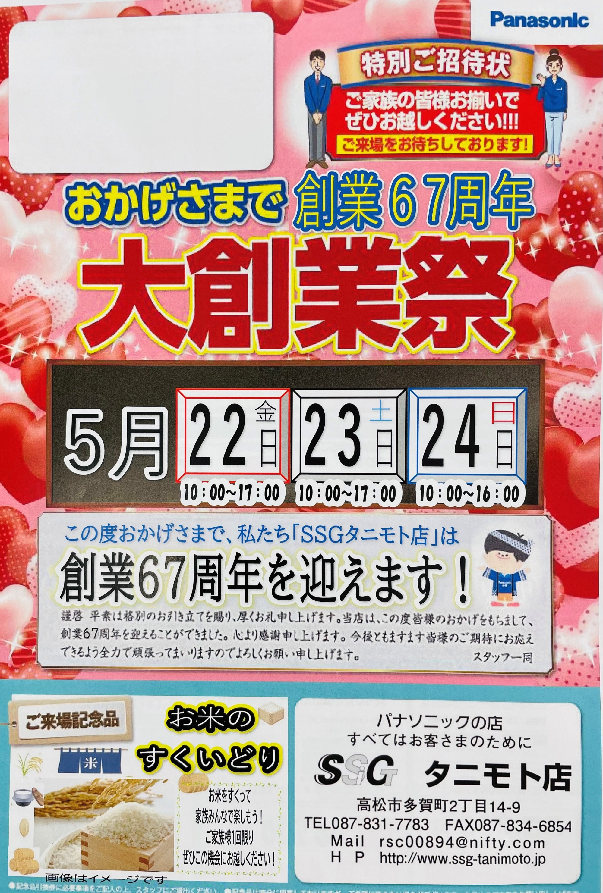 にて大創業祭を開催いたします!!! 皆様のおかげで、創業67周年を迎えることができま
